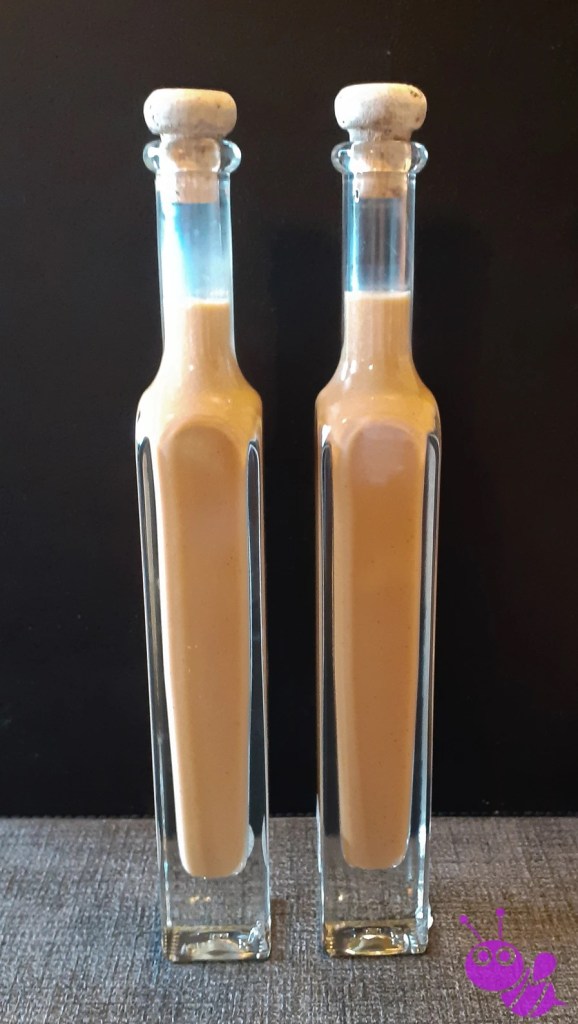 Den Likör mit einem Trichter in die Flaschen abfüllen und in den Kühlschrank stellen.