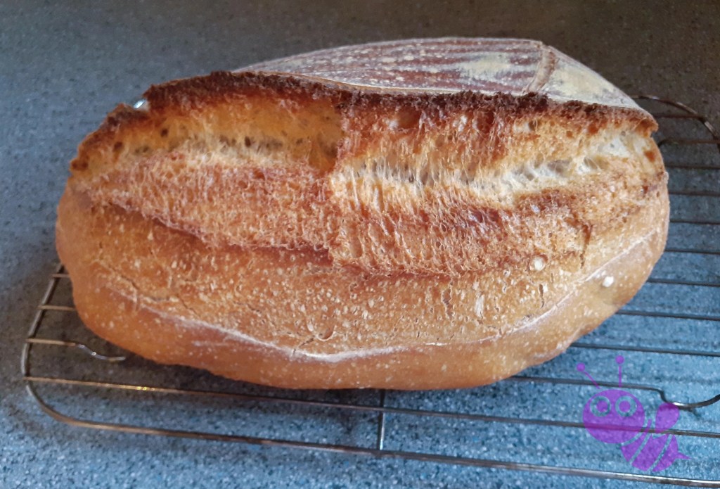 Danach den Deckel entfernen, die Ofentemperatur auf 200°C senken und das Brot für weitere 25 – 35 Minuten goldbraun ausbacken.