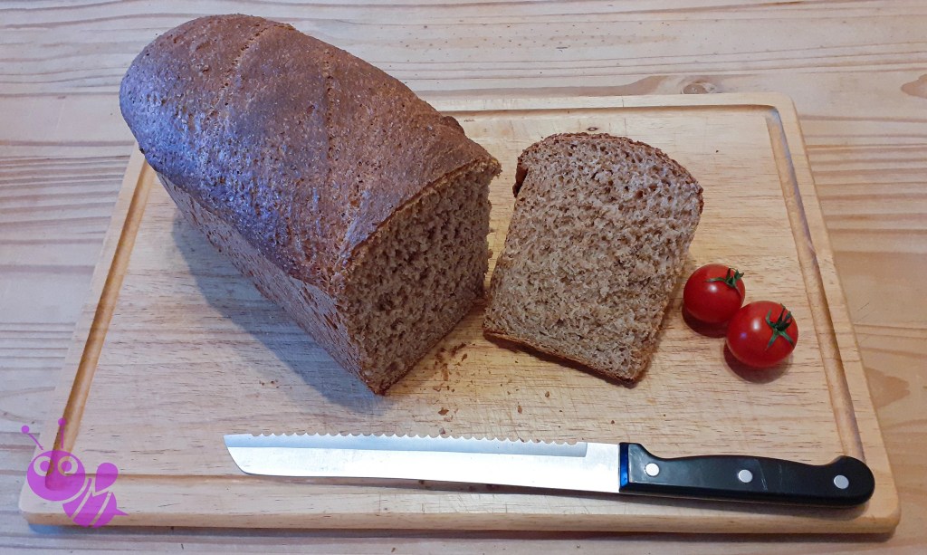 Das Vollkorntoastbrot nach dem Backen mit heißem Wasser bepinseln oder absprühen und auf einem Kuchengitter abkühlen lassen.